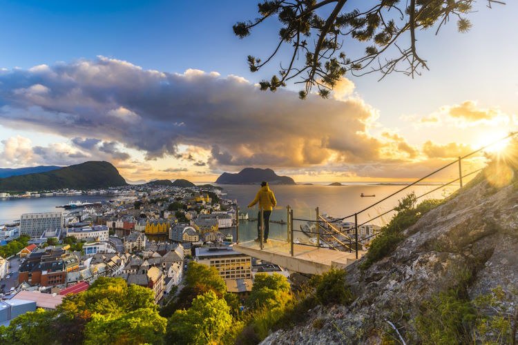From Bergen , a 300km drive north to Ålesund will reveal the rugged beauty of Norway's west coast. Atlantic Road zigzags above the ocean, offering panoramic views of the sea and the wild, rocky coastline. Ålesund looks like it belongs in a fairy tale so take some time to enjoy it. Explore the colourful streets and visit the Jugendstilsenteret Museum dedicated to Art Nouveau design. Hike up to Aksla Hill for panoramic views of the city and surrounding islands (it will take you less than an hour).
